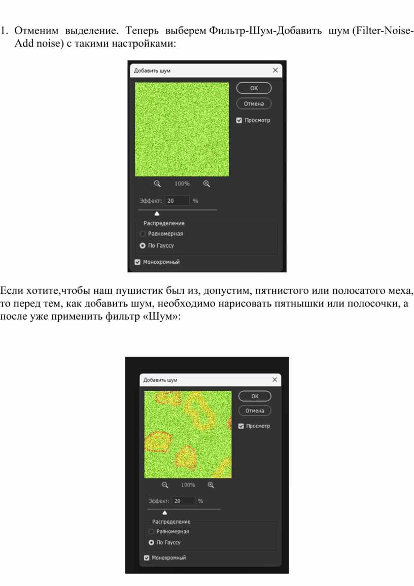Если хотите,чтобы наш пушистик был из, допустим, пятнистого или полосатого меха, то перед тем, как добавить шум, необходимо нарисовать пятнышки или полосочки, а после уже применить фильтр «Шум»: