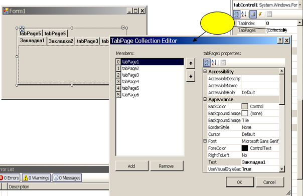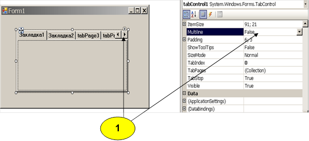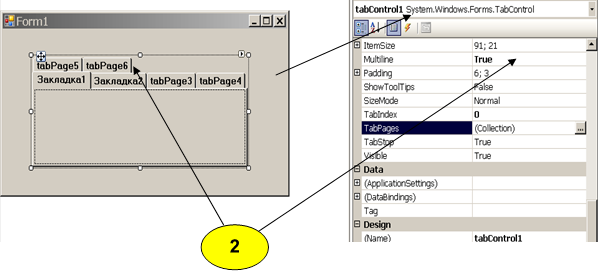 Редактирование свойств TabControl (см. 2).