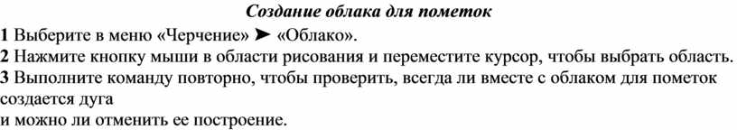 3 Выполните команду повторно, чтобы проверить, всегда ли вместе с облаком для пометок создается дуга