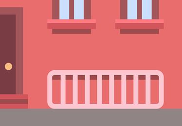 Добавьте две 7x6px фута между знаком и зданием, раскрасьте их, используя ту же самую # C7BABA, а затем расставьте их на расстоянии 60px друг от друга.
