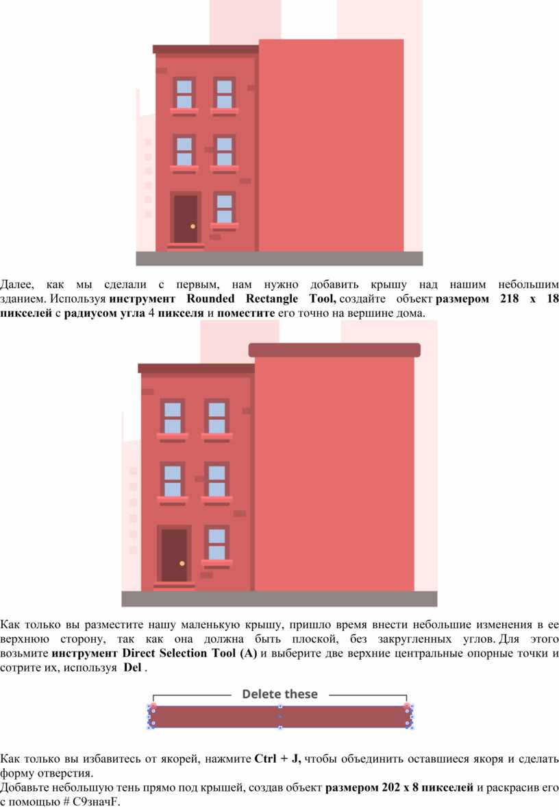 Для второго небоскреба мы создадим более темный (#FCDEDE) прямоугольник размером 100 x 366 пикселей , выровняв его снизу примерно на 67 пикселей от первого здания.