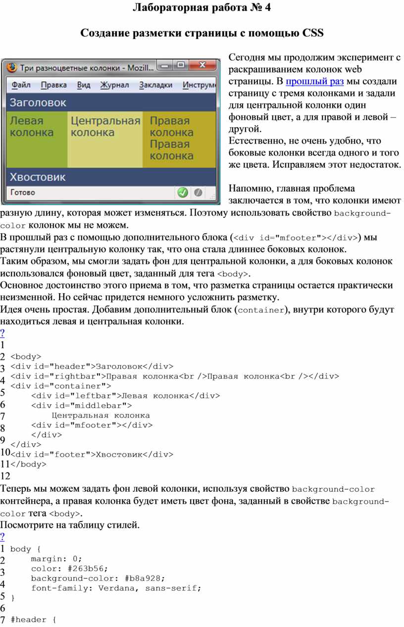 Создание разметки страницы с помощью CSS