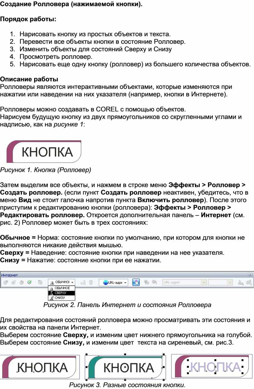 Ролловеры можно создавать в COREL с помощью объектов.