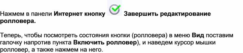 Теперь, чтобы посмотреть состояния кнопки (ролловера) в меню Вид поставим галочку напротив пункта Включить ролловер), и наведем курсор мышки ролловер, а также нажмем на него.