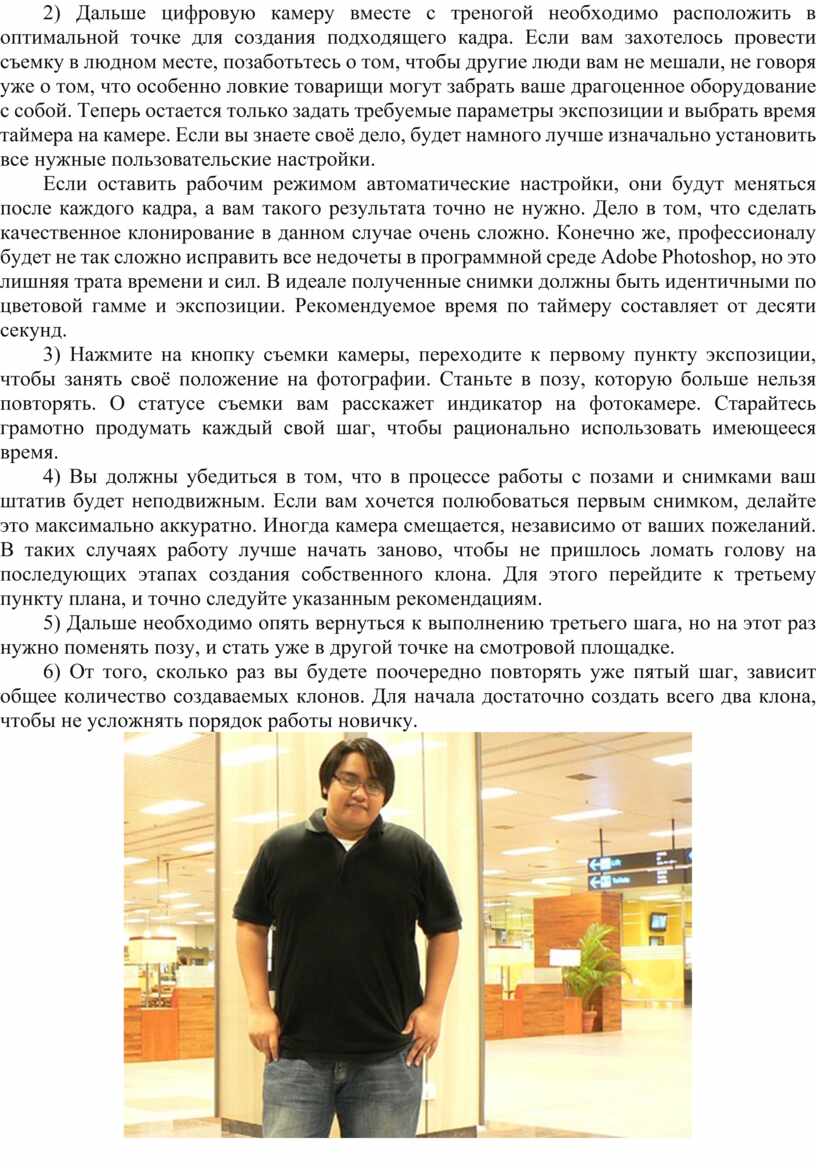 4) Вы должны убедиться в том, что в процессе работы с позами и снимками ваш штатив будет неподвижным. Если вам хочется полюбоваться первым снимком, делайте это максимально аккуратно. Иногда камера смещается, независимо от ваших пожеланий. В таких случаях работу лучше начать заново, чтобы не пришлось ломать голову на последующих этапах создания собственного клона. Для этого перейдите к третьему пункту плана, и точно следуйте указанным рекомендациям.