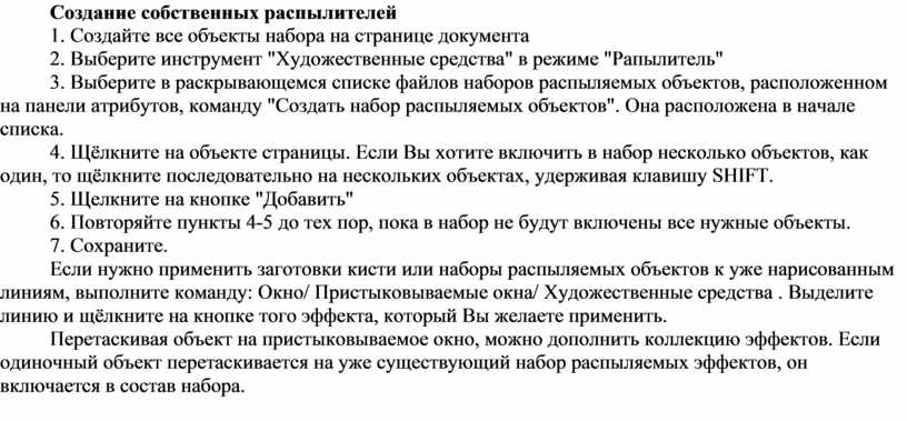 Перетаскивая объект на пристыковываемое окно, можно дополнить коллекцию эффектов. Если одиночный объект перетаскивается на уже существующий набор распыляемых эффектов, он включается в состав набора.