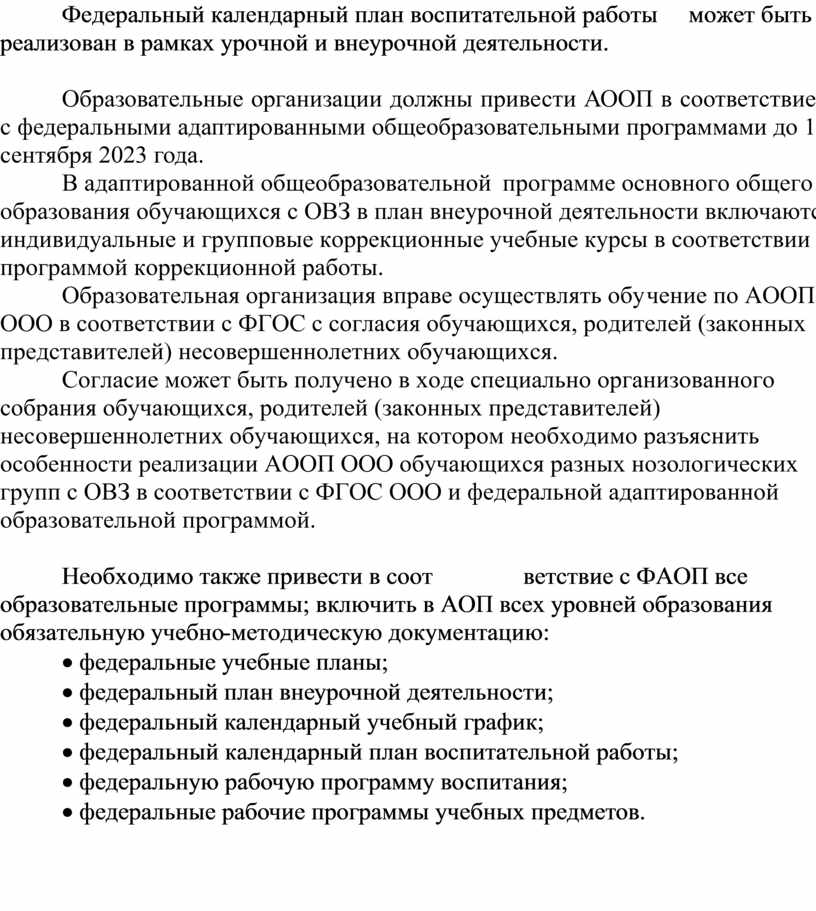 Образовательные организации должны привести АООП в соответствие с федеральными адаптированными общеобразовательными программами до 1 сентября 2023 года.