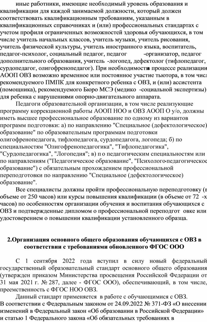 2.Организация основного общего образования обучающихся с ОВЗ в соответствии с требованиями обновленного ФГОС ООО