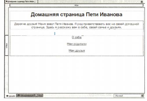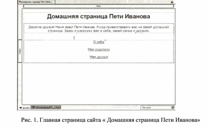 Рис. 1. Главная страница сайта « Домашняя страница Пети Иванова»