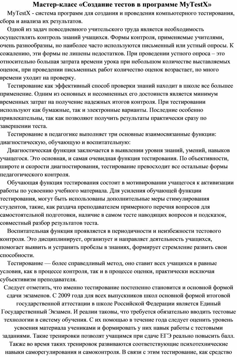 Мастер-класс «Создание тестов в программе MyTestX»