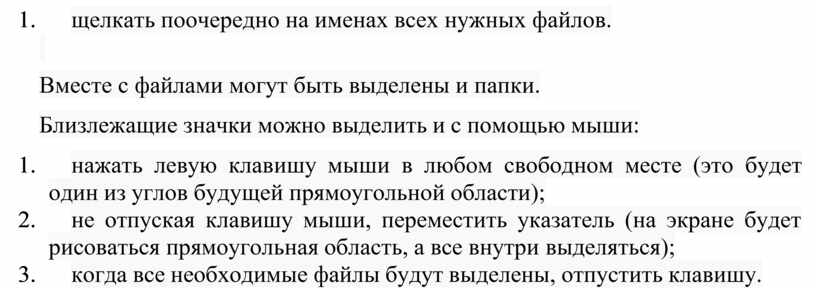 3. когда все необходимые файлы будут выделены, отпустить клавишу.