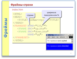 После создания каждого отдельного фрейма их необходимо связать в единую конструкцию. Для этого используется HTML-документ, в котором тело документа (раздел BODY) заменяется описанием фреймовой структуры. Структура