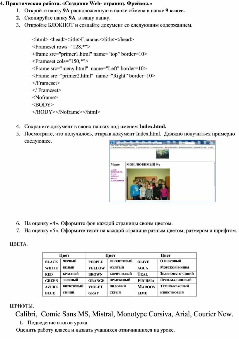 4. Практическая работа. «Создание Web- страниц. Фреймы.»
