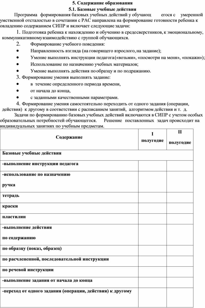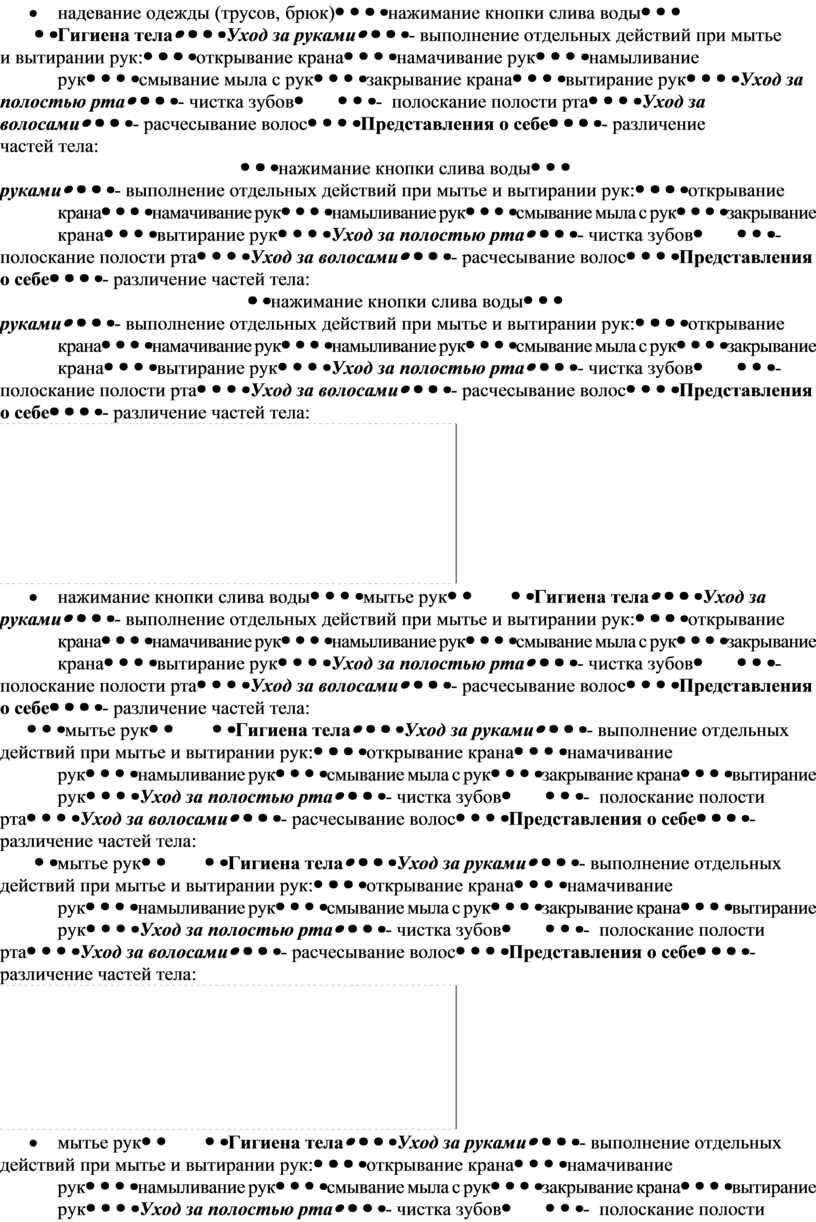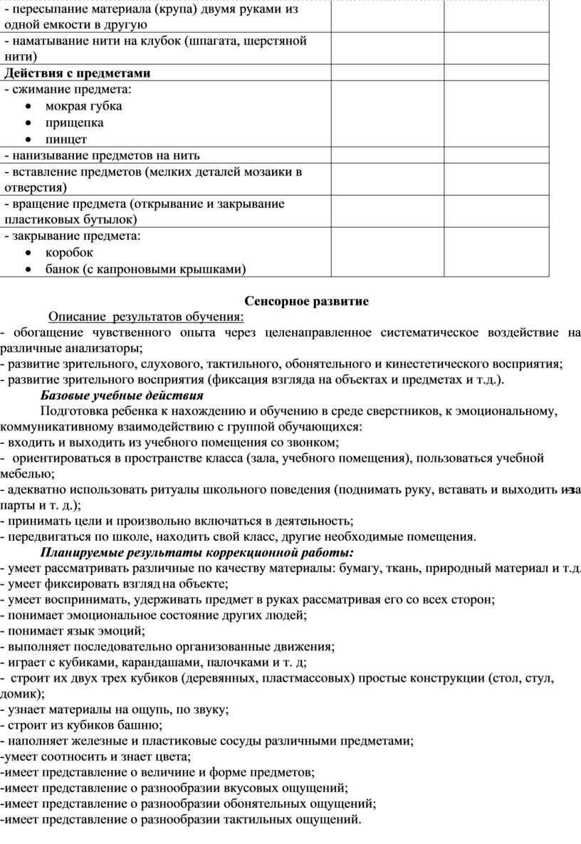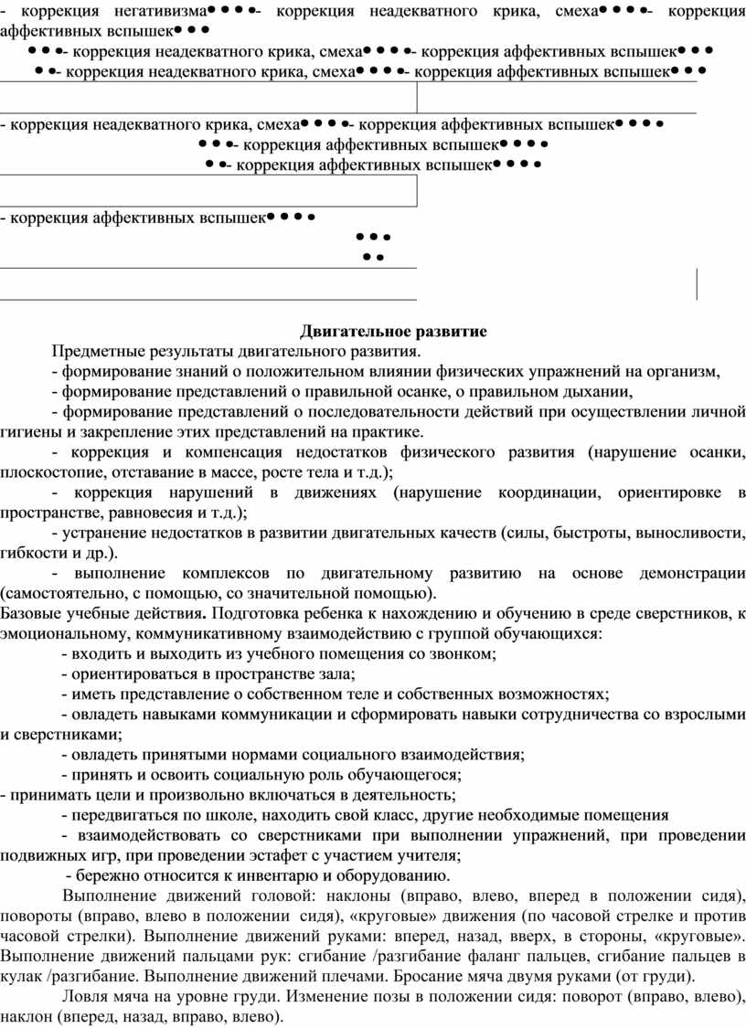1. Музыка и движение 2. Изобразительная деятельность 3. Адаптивная физкультура 4. Окружающий социальный мир 5. Предметно-практические действия 6. Альтернативная коммуникация