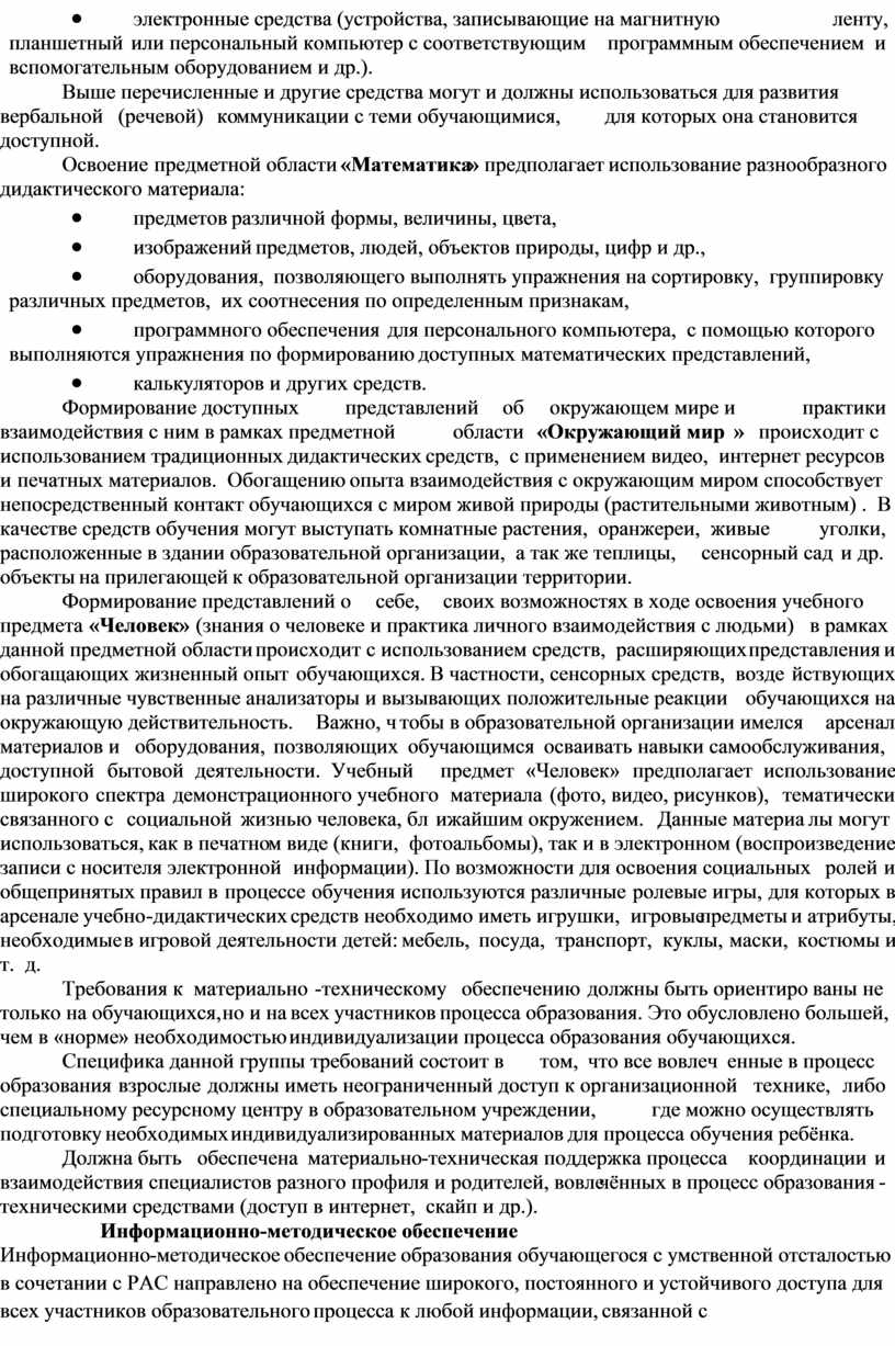 Особые образовательные потребности обучающегося вызывают необходимость специального подбора учебного и дидактического материала, позволяющего эффективно осуществлять процесс обучения по всем предметным областям.