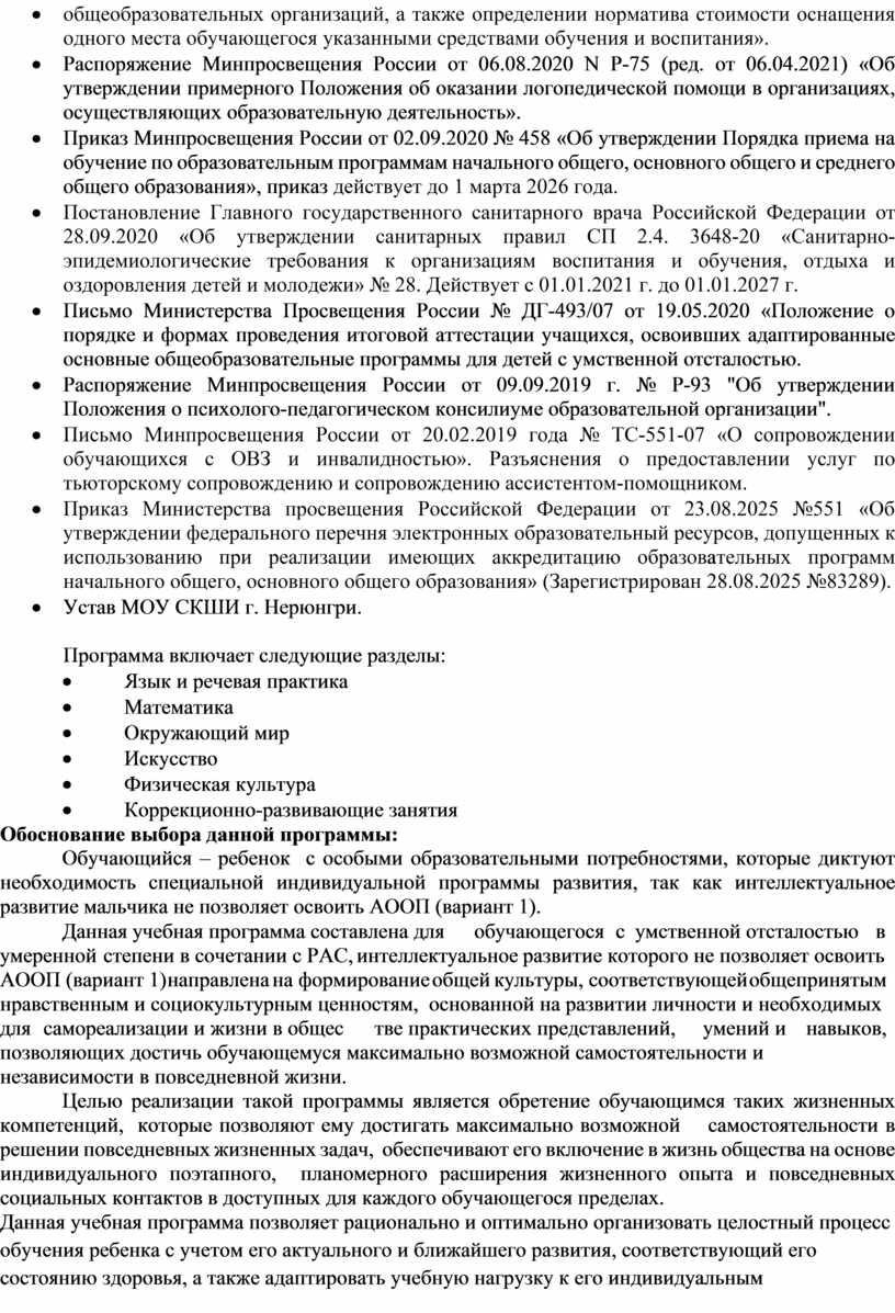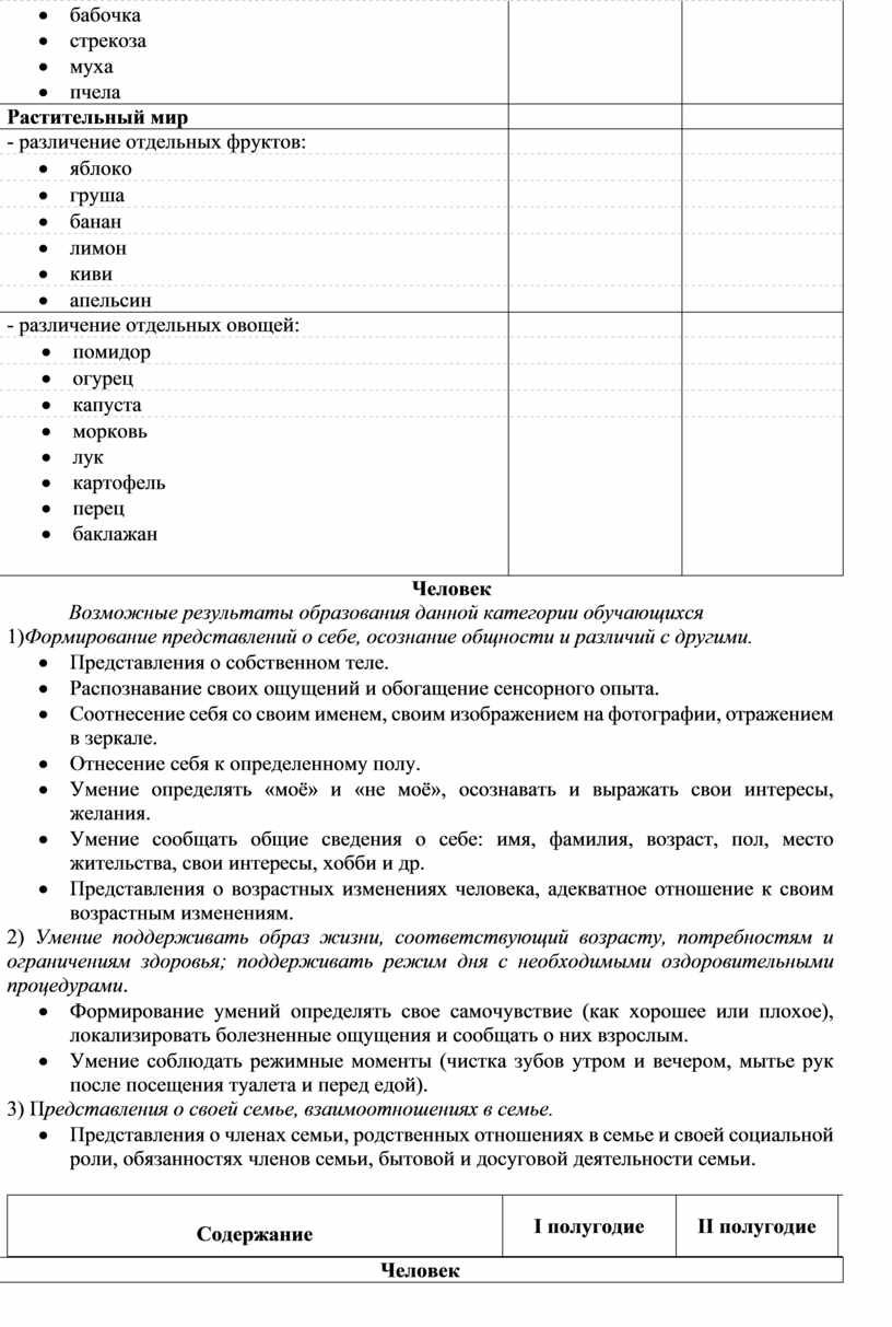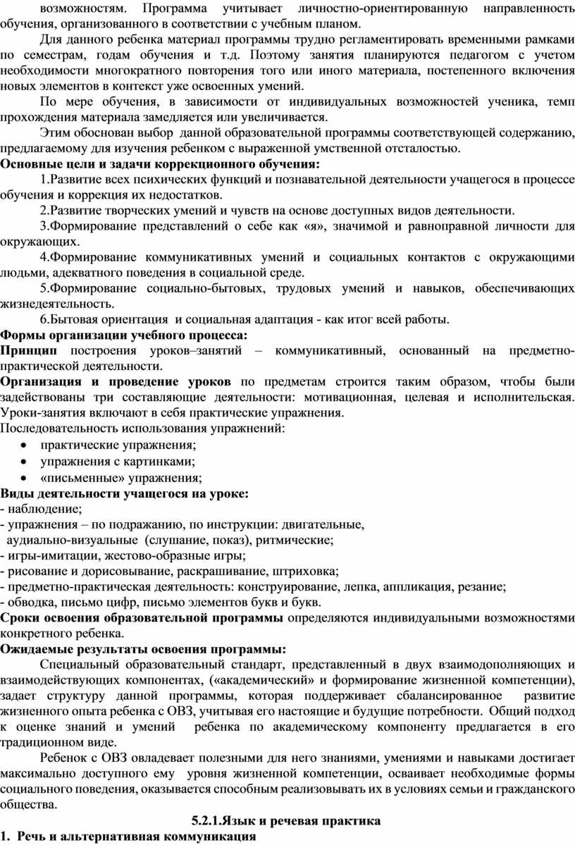 1. Речь и альтернативная коммуникация 2. Окружающий природный мир 3. Математические представления 4. Адаптивная физкультура 5. Человек 6. Альтернативная коммуникация |