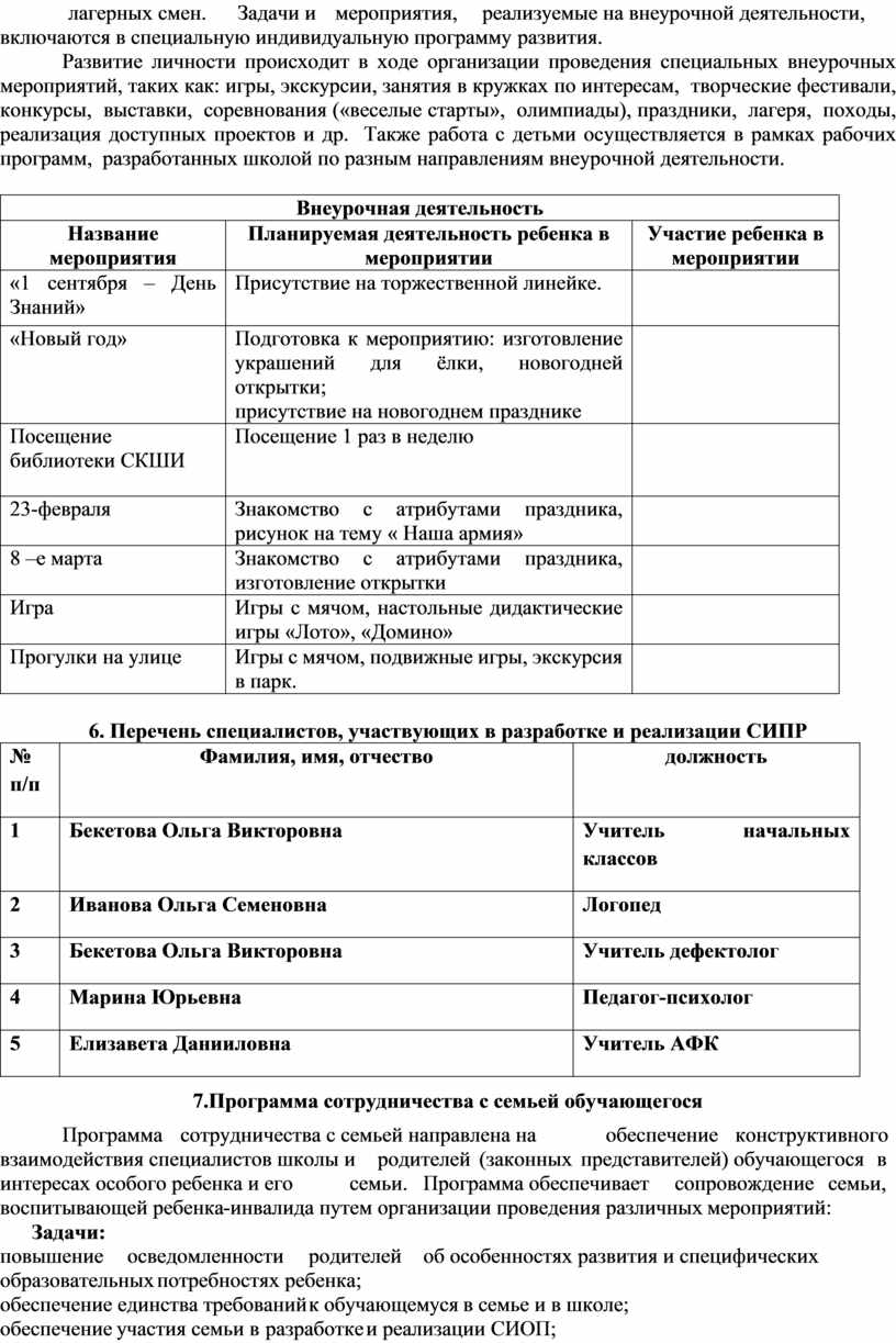 Программа сотрудничества с семьей направлена на обеспечение конструктивного взаимодействия специалистов школы и родителей (законных представителей) обучающегося в интересах особого ребенка и его семьи. Программа обеспечивает сопровождение семьи, воспитывающей ребенка-инвалида путем организации проведения различных мероприятий: