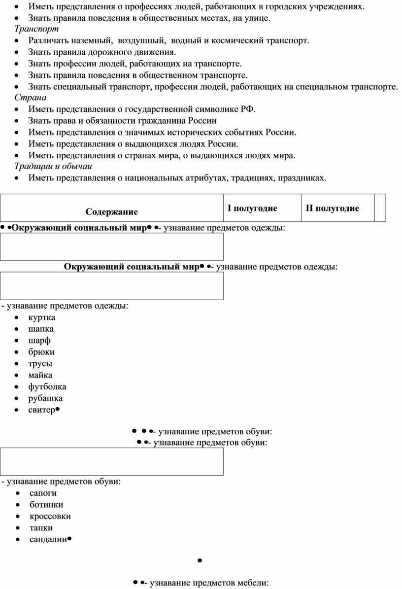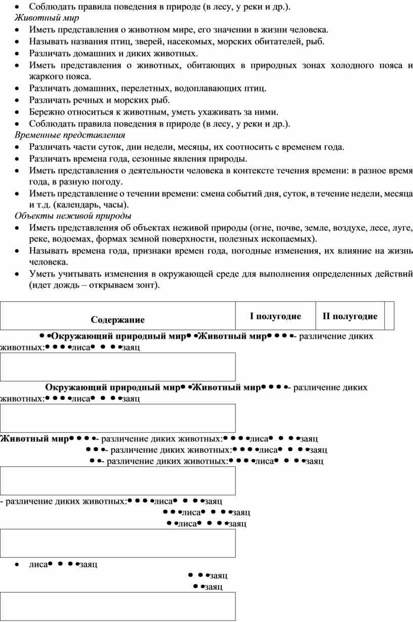 1. Окружающий природный мир 2. Человек 3. Изобразительная деятельность 4. Математические представления 5. Коррекционно-развивающее занятие 6. Двигательная коррекция |