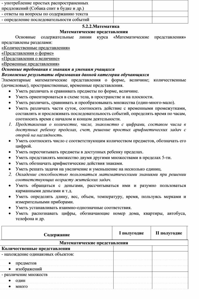 5.2.Содержание учебных предметов и коррекционных курсов.