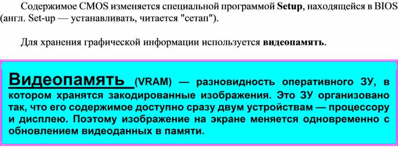 Для хранения графической информации используется видеопамять.