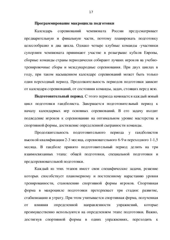 годичного цикла подготовки, и такие же разнообразные рекомендации для
