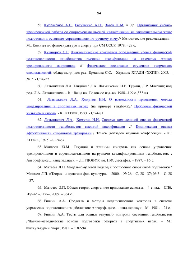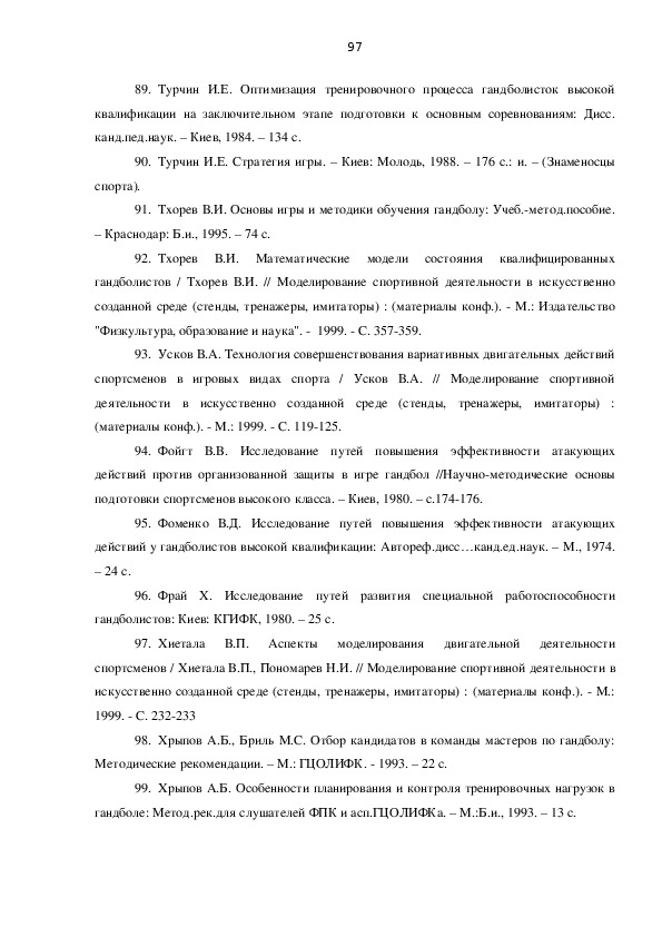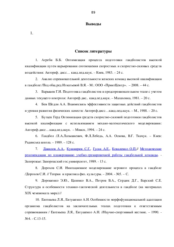 В гандболе имеются работы ряда авторов (И.Н.Алешин [3], Г.И.