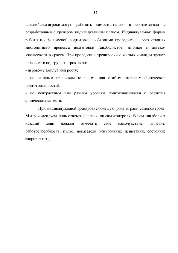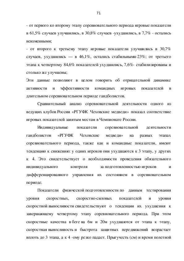 подготовленности команды в целом и каждого гандболиста в отдельности.