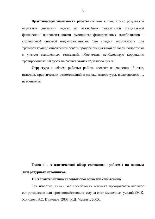 1.5. Роль и значение силовой подготовки в тренировке гандболистов……….
