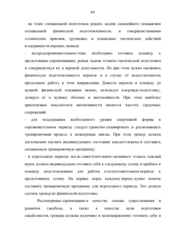В последнее время, когда особо ярко проявляется стремление к ускорению темпа ведения игры, постоянно повышается конкуренция команд в российском чемпионате и на международном уровне, возникает необходимость дальнейшего совершенствования системы подготовки квалифицированных гандболистов. При этом игры, как правило, проходят в условиях повышенного эмоционального и физического напряжения, когда один гол может решить исход встречи и даже определить результат всего соревновательного периода.