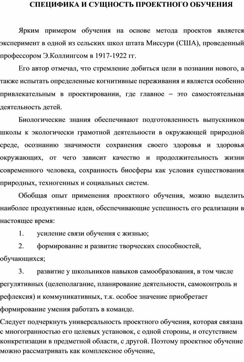 Сегодня проектное обучение означает и широкий спектр педагогических идей, и строгую педагогическую технологию, и способ реализации педагогической детей, подростков и молодежи.