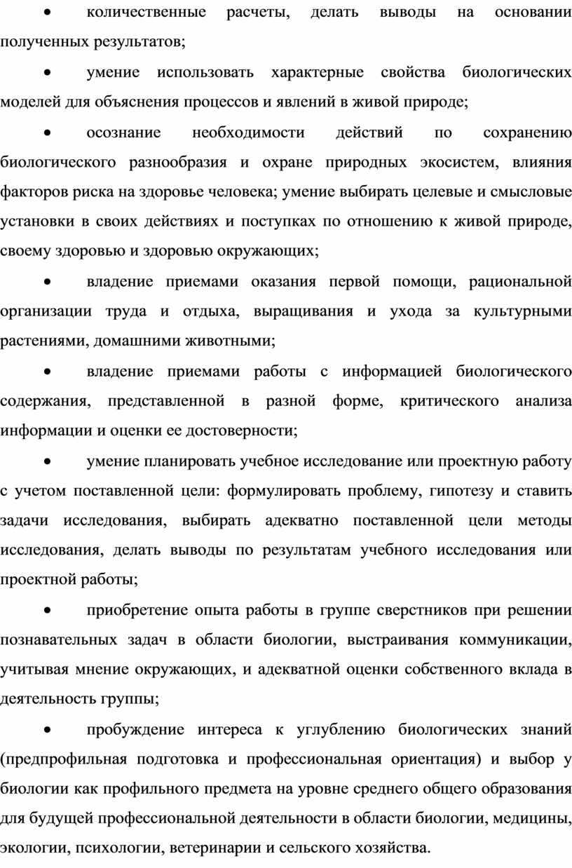 · пробуждение интереса к углублению биологических знаний (предпрофильная подготовка и профессиональная ориентация) и выбор у биологии как профильного предмета на уровне среднего общего образования для будущей профессиональной деятельности в области биологии, медицины, экологии, психологии, ветеринарии и сельского хозяйства.