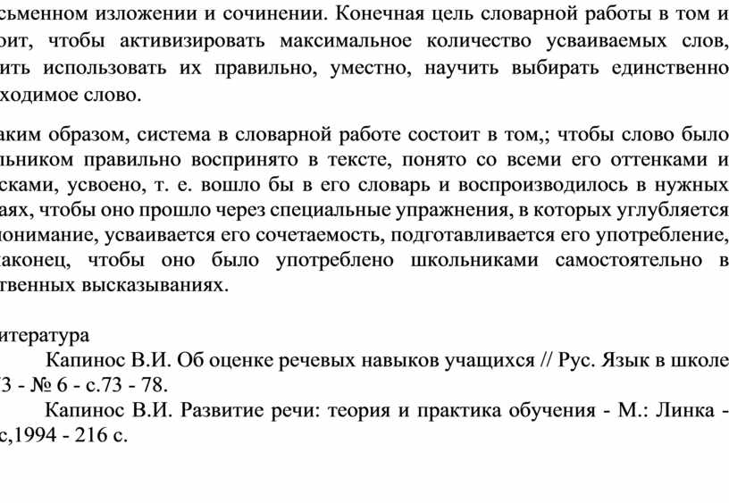 1. Капинос В.И. Об оценке речевых навыков учащихся // Рус. Язык в школе - 1973 - № 6 - с.73 - 78.
