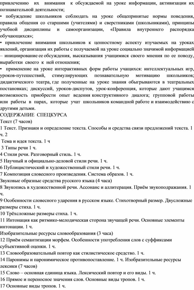 СОДЕРЖАНИЕ СПЕЦКУРСА