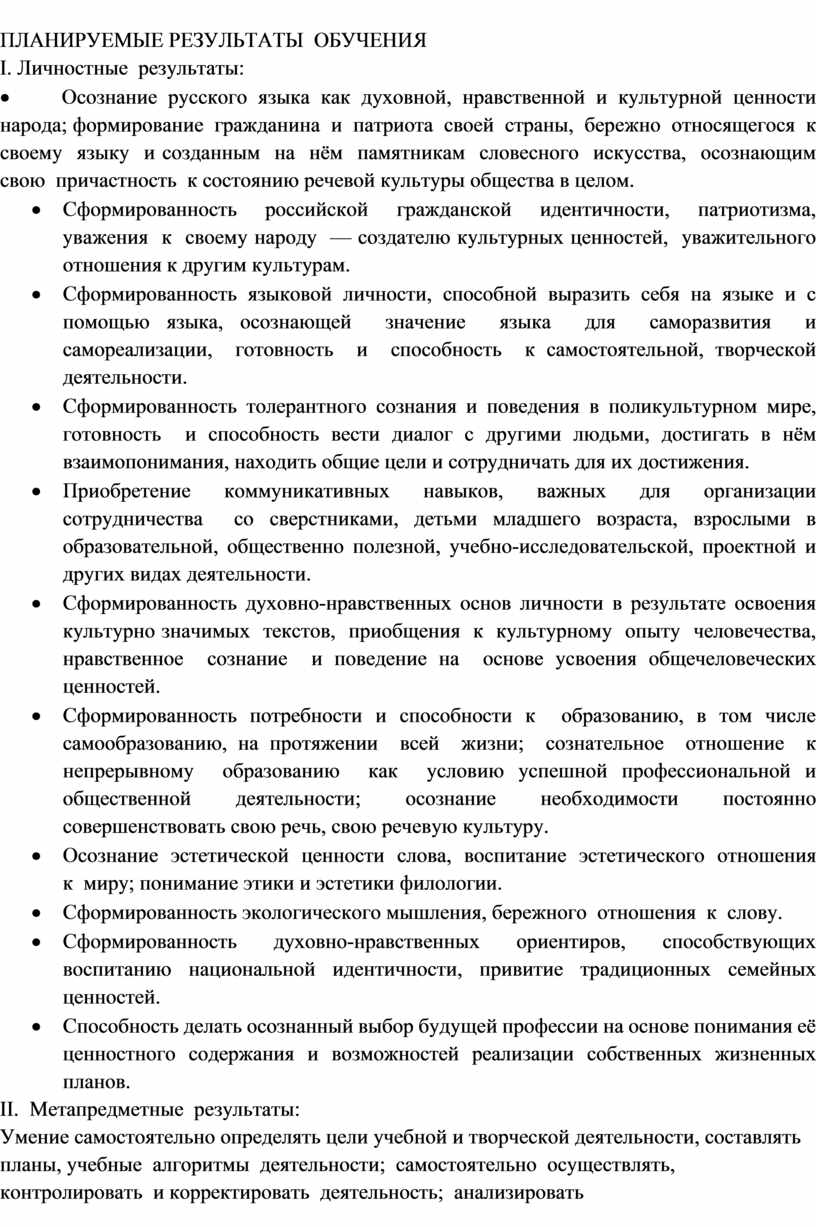 · Осознание русского языка как духовной, нравственной и культурной ценности народа; формирование гражданина и патриота своей страны, бережно относящегося к своему языку и созданным на нём памятникам словесного искусства, осознающим свою причастность к состоянию речевой культуры общества в целом.