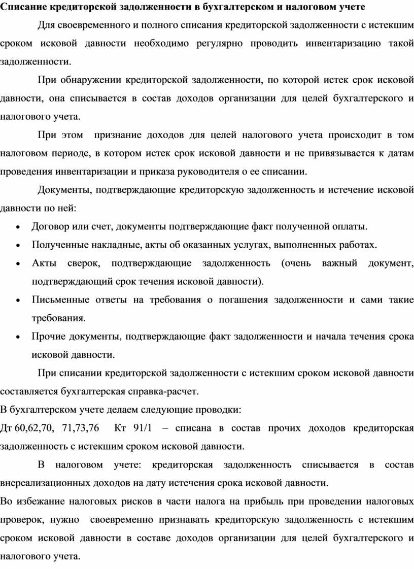 Списание кредиторской задолженности в бухгалтерском и налоговом учете