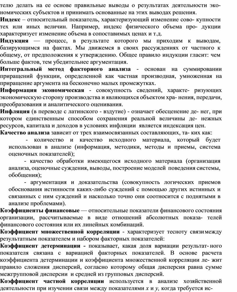 Анализ экономический факторный — постепенный переход от исходной факторной модели (признака) к конечной факторной модели (и наоборот) с це- лью раскрытия как можно более полного набора количественно измеримых
