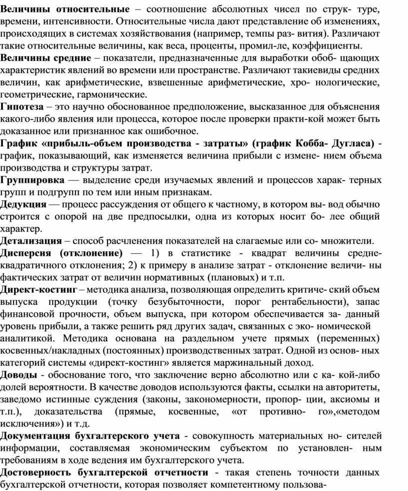 Величины абсолютные – показатели, используемые для характеристики объема, размера, результата финансово-хозяйственной деятельности организа- ции.