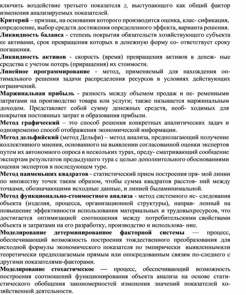 Моделирование стохастическое — процесс, обеспечивающий возможность построения соотношений функционирования объекта анализа на основе стати- стического обобщения закономерностей изменения значений показателей хо- зяйственной деятельности.