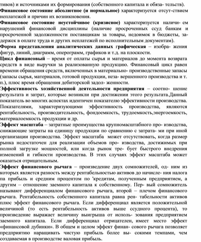 Цикл финансовый – время от оплаты сырья и материалов до момента возврата средств в виде выручки за реализованную продукцию. Финансовый цикл равен времени обращения средств, включенных в материально- производственные запасы (запасы сырья, материалов, готовой продукции, неза- вершенного производства и т. п.), плюс время обращения дебиторской задол- женности.