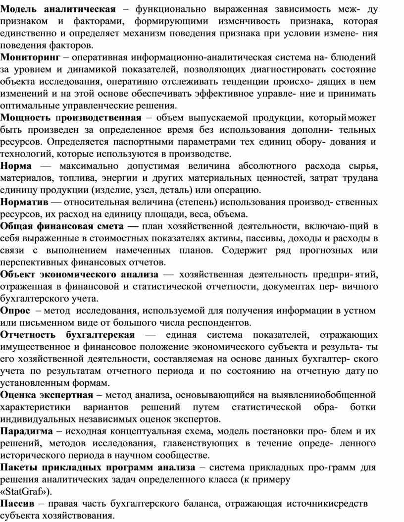 Анализ экономический в широком смысле слова представляет собой про- цесс проверки соблюдения требований объективности (объективных экономи- ческих законов, закономерностей и пропорций) в конкретных экономических системах.