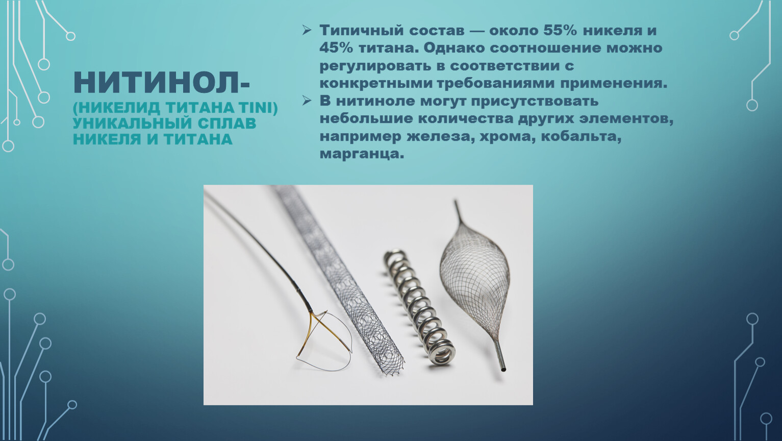 Типичный состав — около 55% никеля и 45% титана. Однако соотношение можно регулировать в соответствии с конкретными требованиями применения.