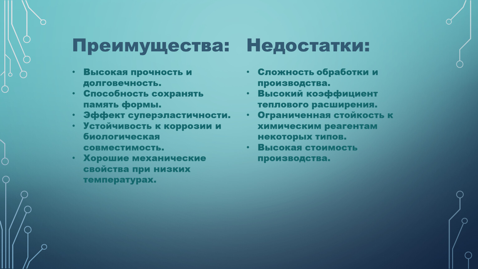 Устойчивость к коррозии и биологическая совместимость.