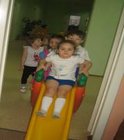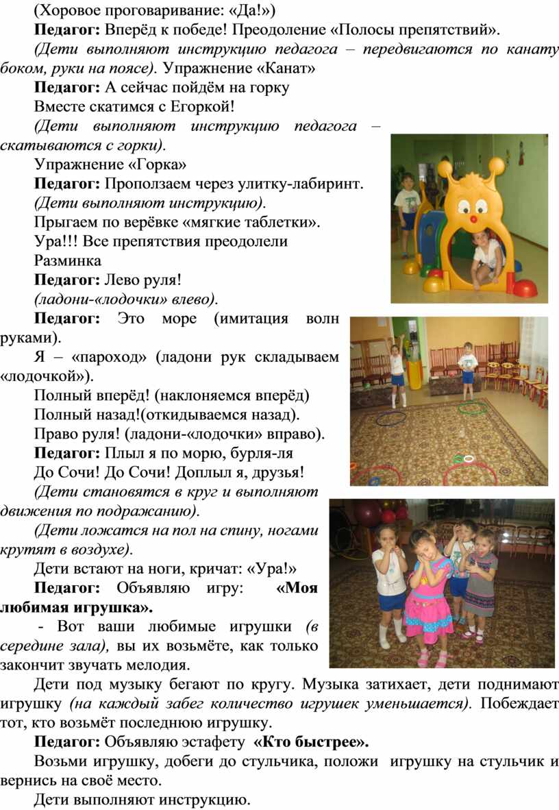 Дети в спортивной одежде выстраиваются в группе, от которой надо дойти до музыкально-спортивного зала, но для этого надо пройти «полосу препятствий».