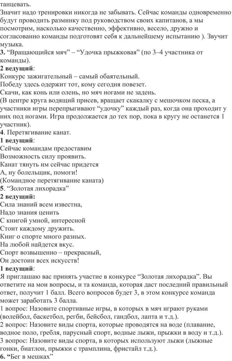 Сценарий спортивного праздника "Спортивное путешествие"