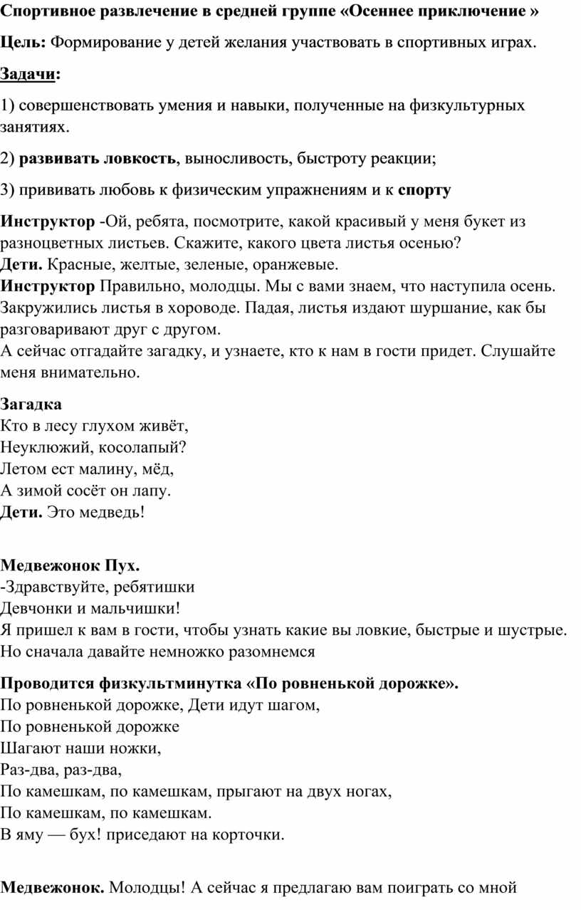 Спортивное развлечение в средней группе «Осеннее приключение »