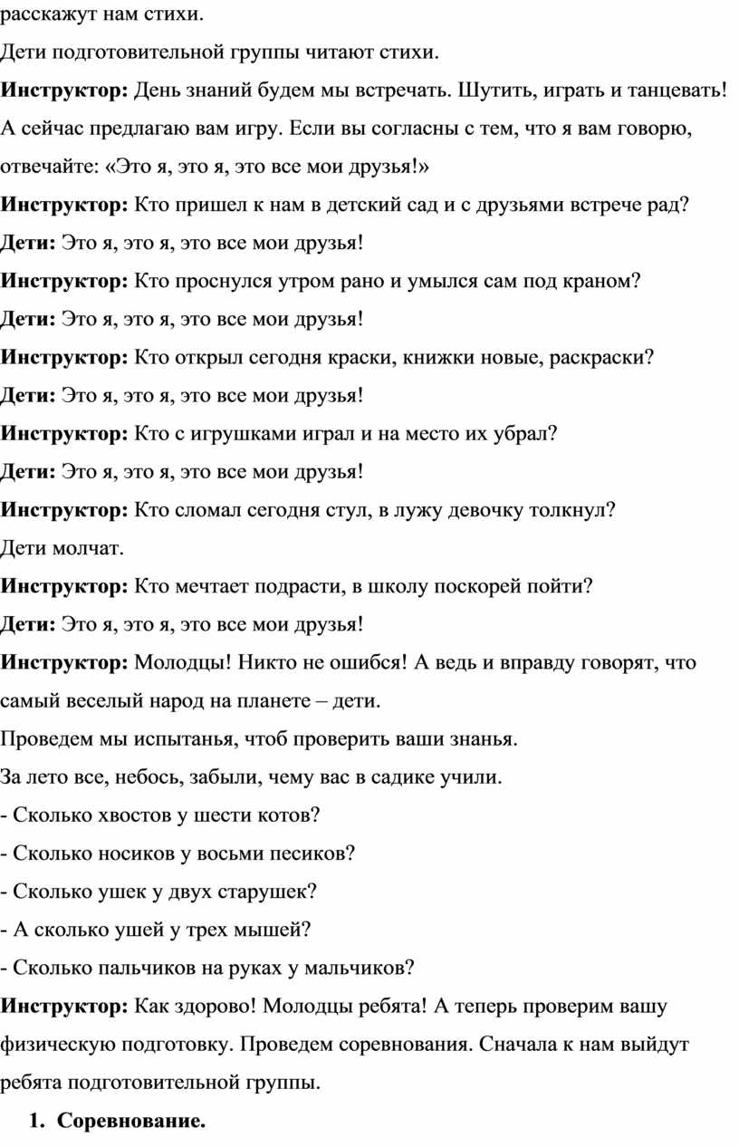 Инструктор: День знаний будем мы встречать. Шутить, играть и танцевать!