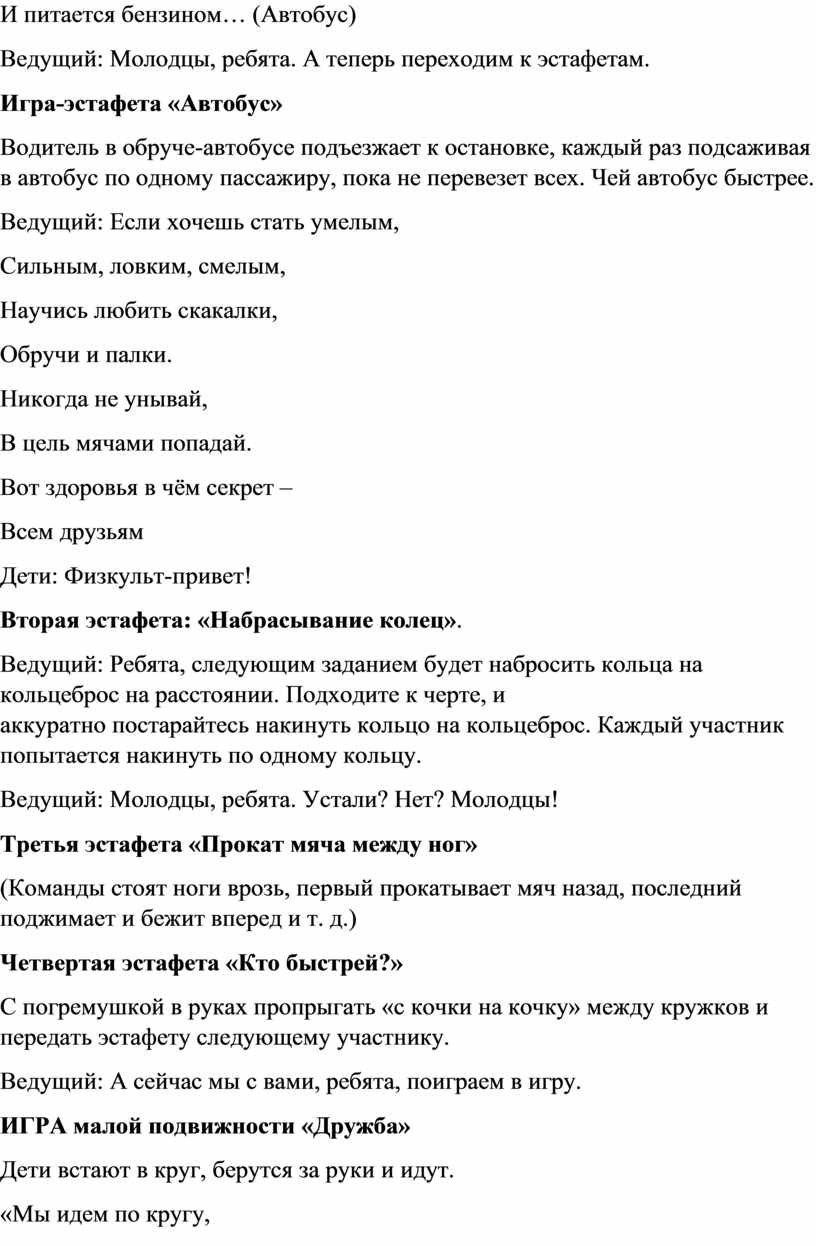 Ведущий: Пожелаем успеха обеим командам в предстоящих соревнованиях и переходим к эстафетам. Сегодня мы приглашаем вас отправиться в путешествие. А поедем мы на том, о чем я сейчас загадаю: