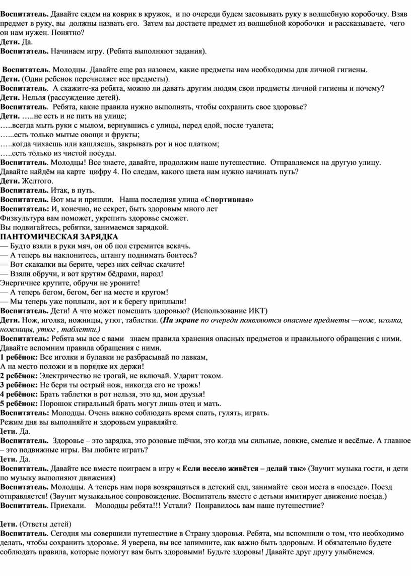 Воспитатель. Тогда я вам предлагаю отправиться в путешествие по стране Здоровья. Вы согласны?