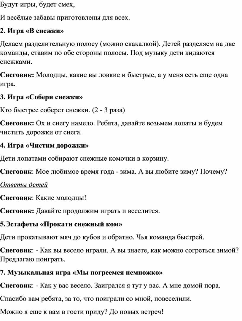 Снеговик: Молодцы, какие вы ловкие и быстрые, а у меня есть еще одна игра.