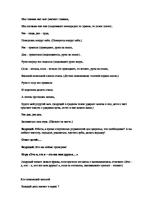 Ведущий: Праздник наш заканчивается, вижу, что в нашем саду нет больных. Все дети